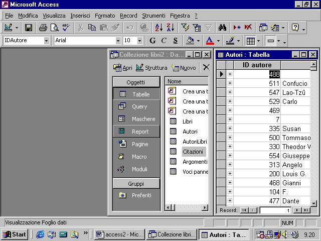 Mediante il menu Finestra possiamo anche decidere di visualizzare contemporaneamente tutti gli oggetti affiancandoli orizzontalmente