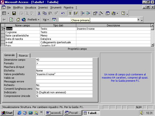 e di tipo contatore. Osserviamo che questo campo è indicizzato e i duplicati