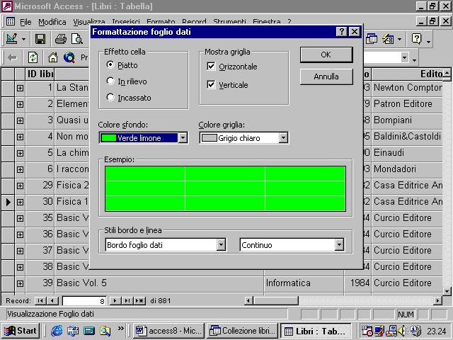 dal comando Foglio dati nel menu Formato possiamo variare altre caratteristiche della tabella